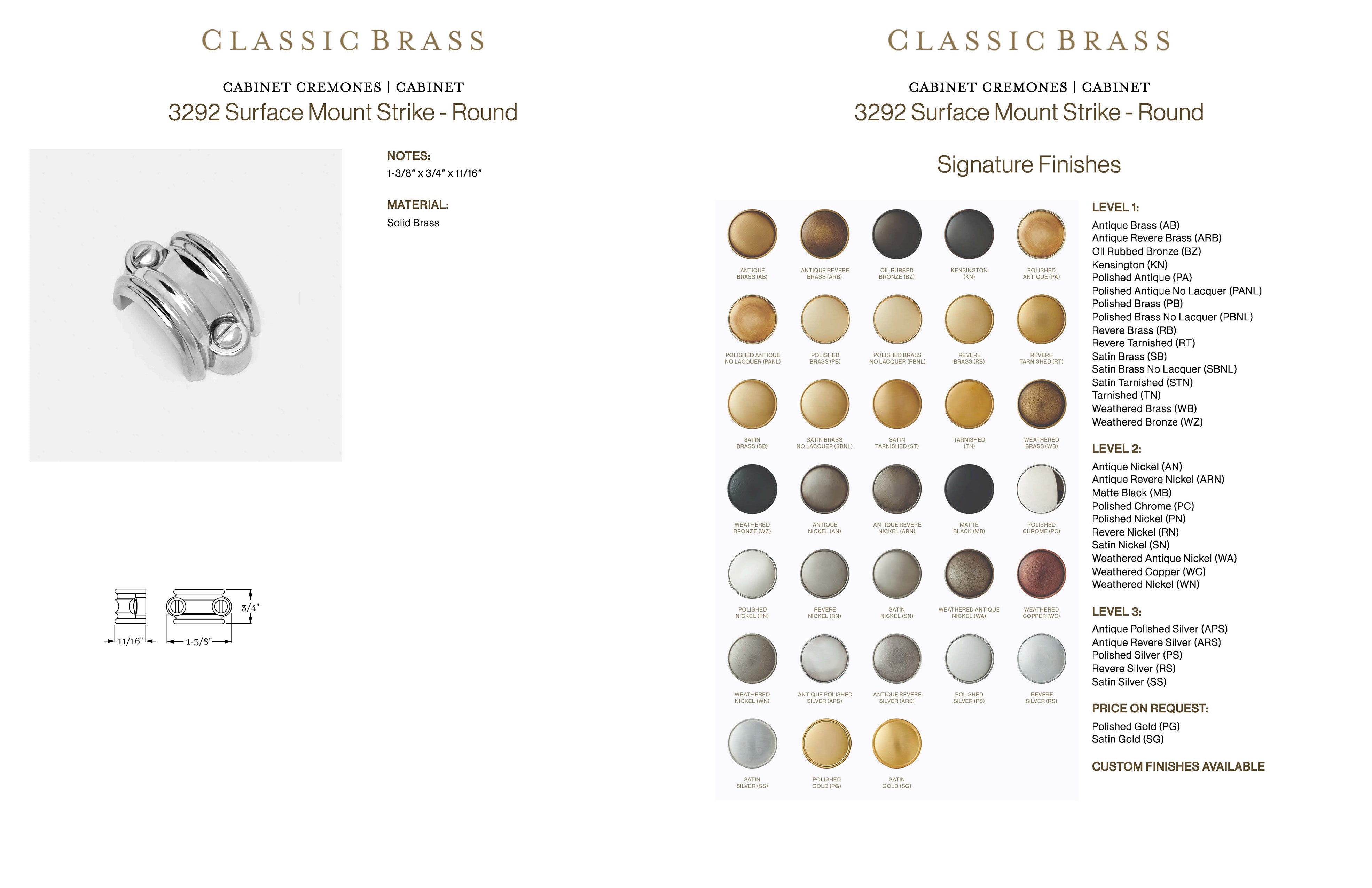 3292, Surface Mount Strike - 1-3/8" x 3/4" x 21/32" Round, Cabinet Cremones